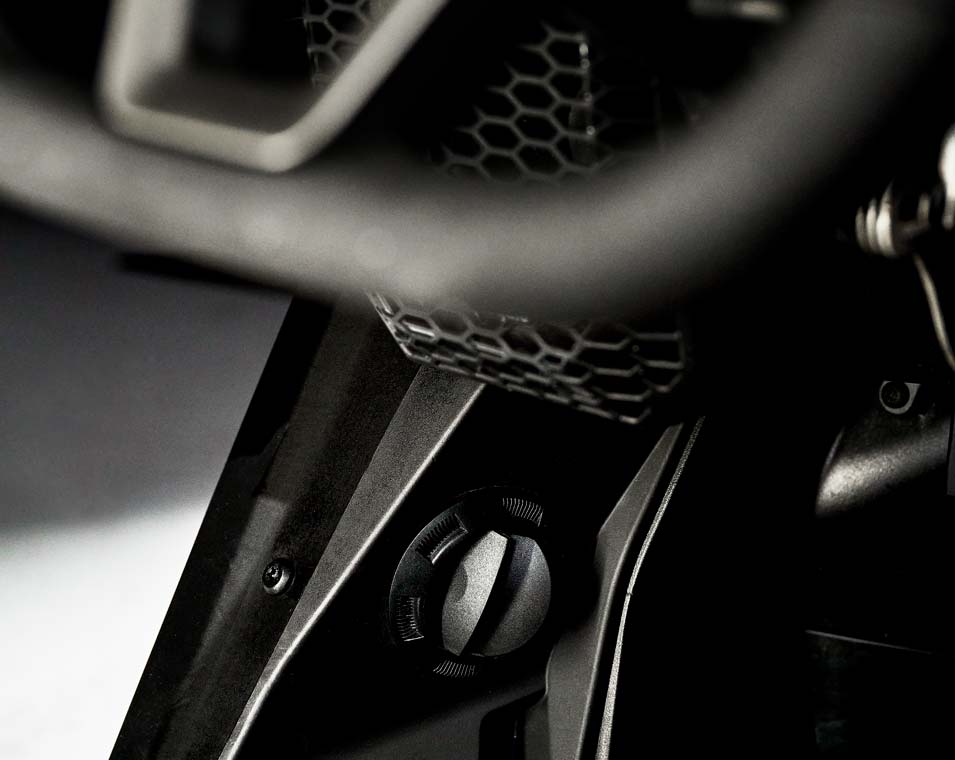 Volant inspiré de la course automobile avec réglage en inclinaison et en profondeur ; commandes à boutons-poussoirs DYNAMIX et RIDE COMMAND.