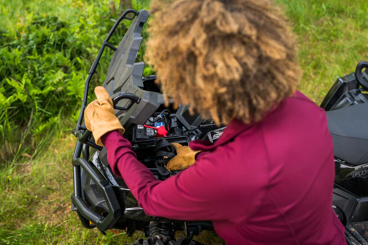 3 modes de conduite : Standard / Travail / Performance, Prise électrique 12 volts, port de charge lente intégré, pré-câblé pour chauffe-mains et chauffe-pouces, système de sécurité activé par code PIN, Treuil de 1 587kg (3 500 lb) avec corde synthétique et NOUVEAU système d'arrêt automatique, Rallonge de porte-bagages avant, benne basculante, protections de bras triangulaires avant et arrière, plastiques peints